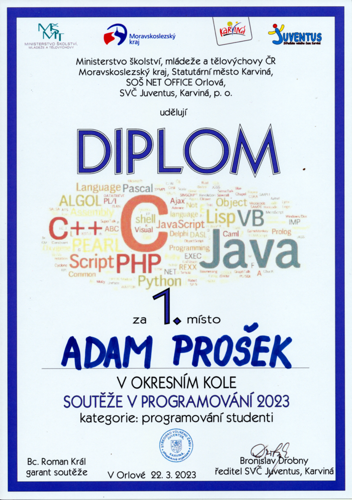 Dne 22. března 2023 se na Střední odborné škole Net Office v Orlové uskutečnilo okresní kolo 37. ročníku Soutěže v programování.