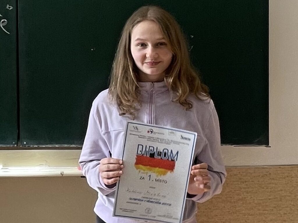 Kateřina Mrázková ze třídy G4.A po roce zopakovala úspěch v okresním kole konverzační soutěže v německém jazyce a umístila se opět na 1. místě. Soutěž se konala 11.2.2026 v Havířově na Gymnáziu Studentská.