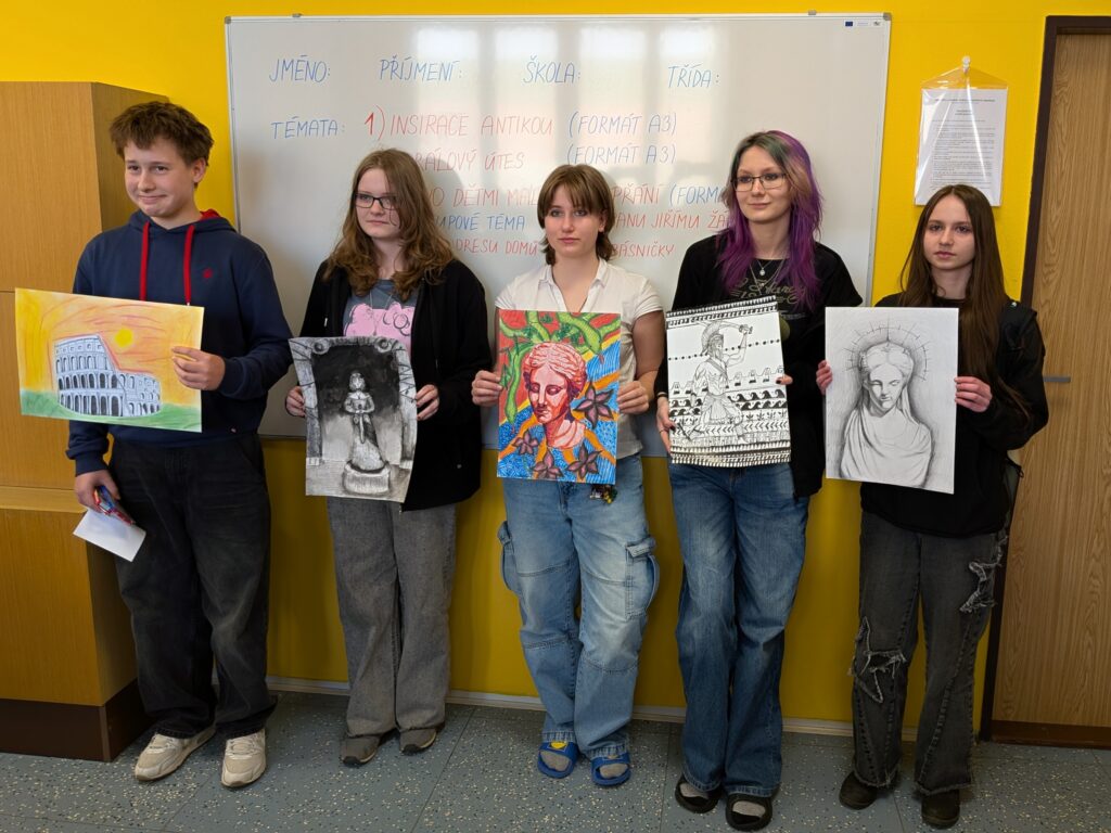 Za naši školu se soutěže účastnily žákyně Marie Ochmanová (G1.A), Pavlína Pavelková a Emma Paříková (G2.A), Daniela Litnerová (G3.A), Eva Janská a Eva Grúberová (G4.A). V převážné většině se nechaly „Inspirovat antikou“.