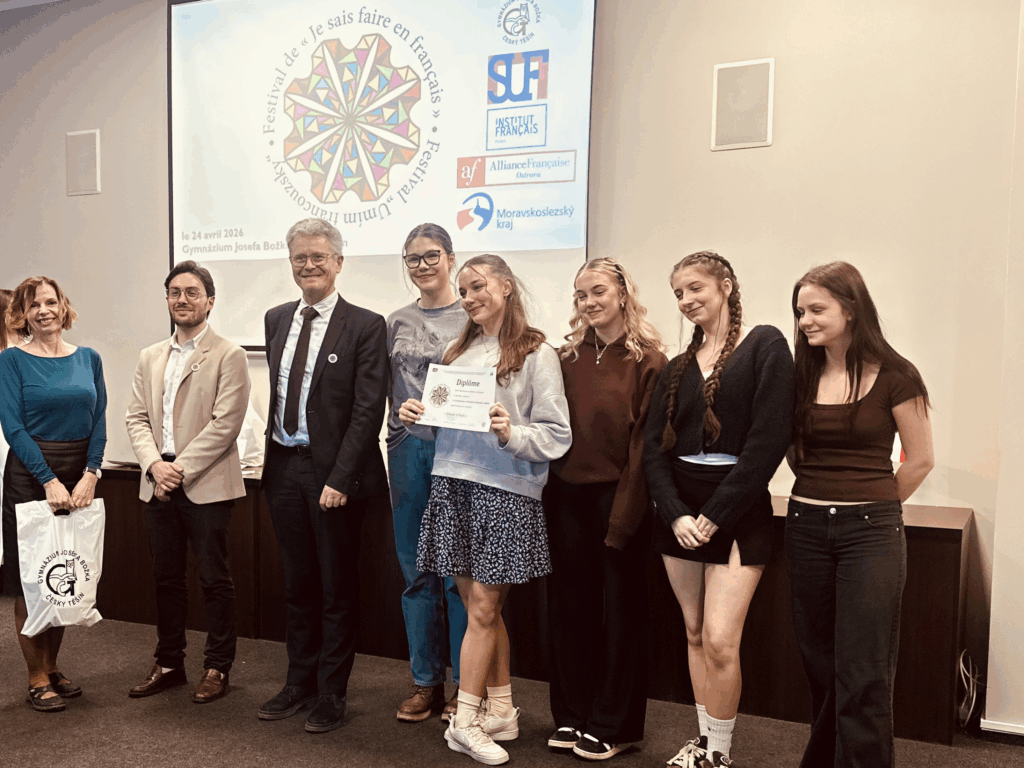 V pátek 24. 4. 2026 se na Gymnáziu J. Božka v Českém Těšíně konal 11. ročník Festivalu Umím francouzsky. Jde o jedinečné frankofonní setkání nadšenců, kteří si připravili divadelní představení, recitaci, píseň, reportáž nebo jako zástupci naší školy – taneční vystoupení. Téma je libovolné, vše samozřejmě ve francouzštině.