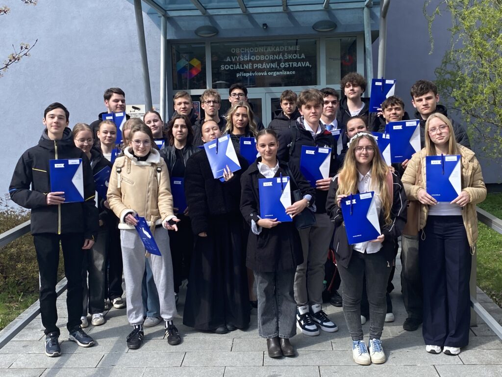 Ve čtvrtek 9. dubna 2026 proběhlo na Obchodní akademii a Vyšší odborné škole sociálně právní v Ostravě slavnostní předávání certifikátů žákům, kteří absolvovali tandemovou výuku odborné angličtiny.