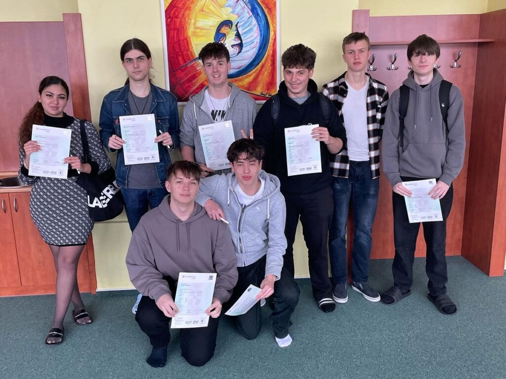 Na přelomu února a března 2025 proběhly na naší škole mezinárodní zkoušky z jazyka anglického B2 First a CAE, kterých se zúčastnilo téměř čtyřicet studentů z maturitních a třetích ročníků naší školy. Studenti se na tuto zkoušku připravovali v rámci seminářů, případně formou samostudia a konzultací s vyučujícími. Všichni studenti zkoušku úspěšně složili. Deset studentů dosáhlo