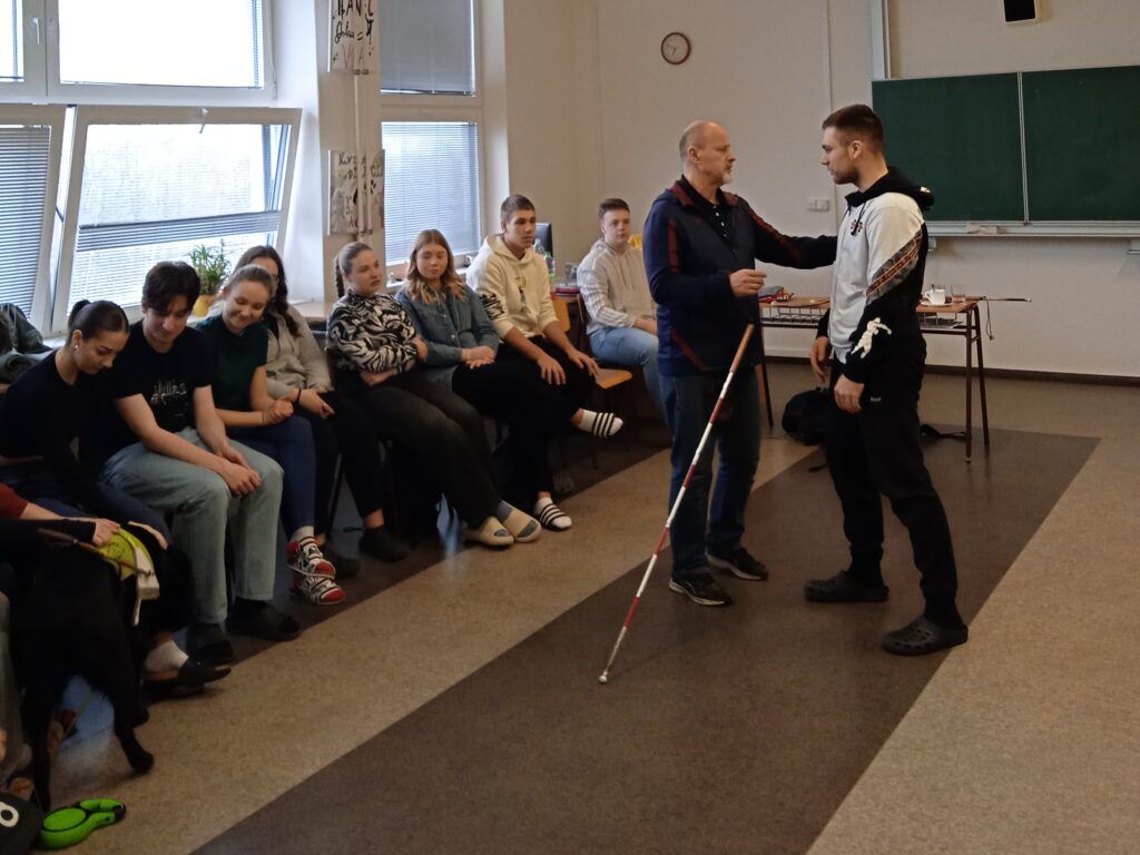 Ve čtvrtek 27. února 2025 na naši školu zavítal vzácný host pan Ladislav Holba. Doprovázel ho jeho věrný kamarád – vodicí pes dr. Kelly. Pan Holba se se studenty V3.A podělil o svůj životní příběh. Přestože trpí závažným onemocněním – je nevidomý a téměř neslyšící, snaží se žít velmi aktivně. Studenti se mohli seznámit s používáním