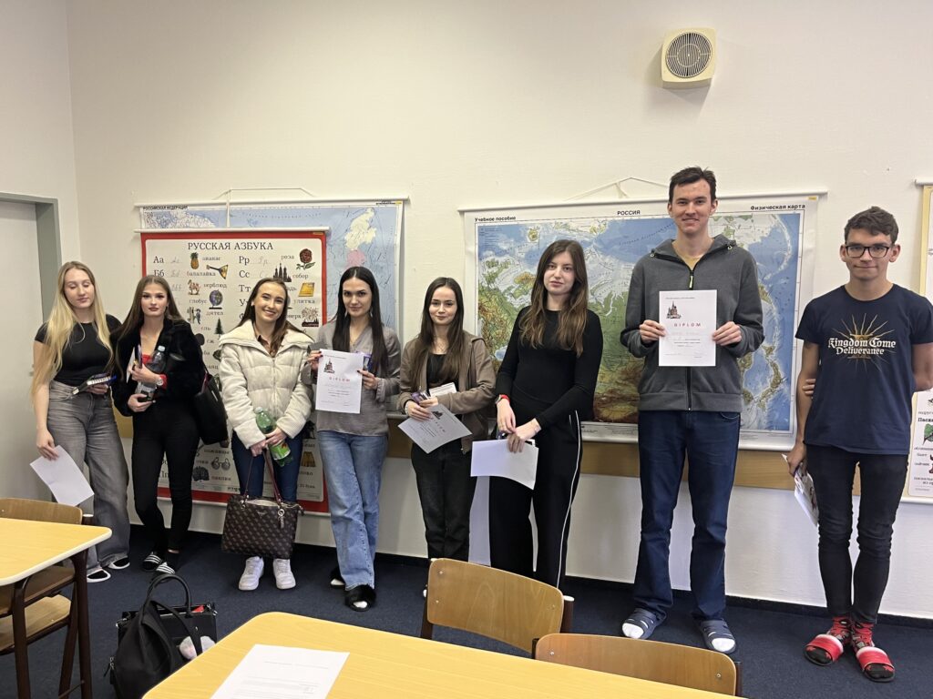 V úterý 25. 2. 2025 se uskutečnilo školní kolo konverzační soutěže v jazyce ruském. Soutěže se zúčastnilo 8 žáků, kteří soutěžili ve dvou kategoriích, a to v kategorii SŠ, která je určena pro žáky 1. až 3. ročníků středních škol a 5. až 7. ročníků osmiletých gymnázií, a v kategorii SŠ +, kdy tato kategorie