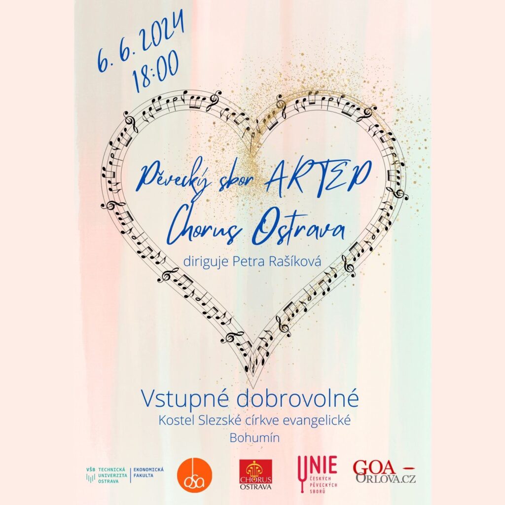 Srdečně Vás zveme na závěrečný koncert pěveckého sboru ARTEP, který se uskuteční 6. 6. 2024 v 18 hodin v kostele Slezské církve evangelické v Bohumíně. Jako host vystoupí Smíšený pěvecký sbor CHORUS OSTRAVA, který působí při Ekonomické fakultě Vysoké školy báňské – Technické univerzitě Ostrava. Mgr. Petra Rašíková