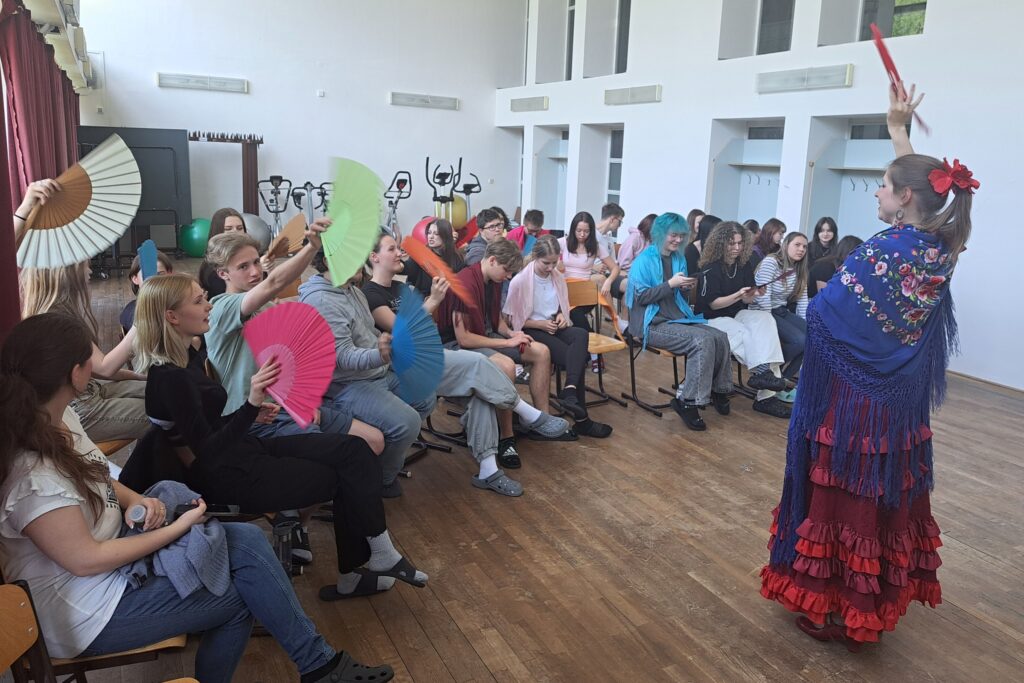 Dne 9. května 2024 jsme obohatili naši výuku španělštiny workshopem zaměřeným na tradiční španělskou hudbu a tanec FLAMENCO. Paní Ing. Aneta Burianová, která se flamencu věnuje již přes 18 let, přijala naše pozvání, a tak měli naši španělštináři možnost zúčastnit se workshopu přímo ve škole. Dozvěděli jsme se, co to vlastně flamenco je a co