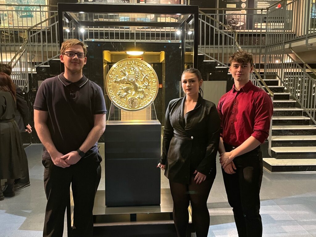 V pátek 26.4.2024 jsme jeli Martin Ligus, Natálie Visnarová a Josef Kožusznik na finálové kolo soutěže Finanční gramotnost. Soutěž se konala v ČNB v Praze. Dostali jsme šanci si projít expozici a prohlédnout si největší minci v Evropě a také si potěžkat jednu cihlu zlata. Celá soutěž mi mnoho dala a jsem velice ráda, že