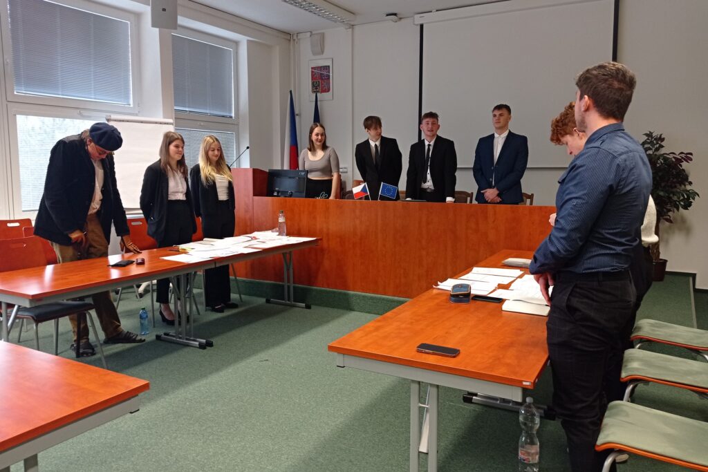 V úterý 12. března 2024 si třída V4.A zpestřila výuku práva formou simulovaného soudního řízení. Po jarních prázdninách studenti obdrželi soudní případ a rozdělili si role poškozeného, žalovaného, svědků, právních zástupců, soudců a také soudní zapisovatelky. Měli několik týdnů na seznámení se s rolí a osvojení postavy. Jednalo se o případ pana Malátného, kterému zaměstnavatel