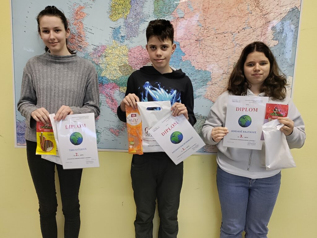 V pondělí 29. ledna 2024 proběhla v aule pro zájemce o zeměpis olympiáda. Všichni soutěžící předvedli velmi dobré znalosti. A kdo byl nejúspěšnější? Kategorie A (prima) 1. David Nachtnebl 2. Timea Kučerová 3. Adriana Bajtková Kategorie B (sekunda) 1. Eva Janská 2. Kateřina Mrázková 3. Daniel Duras Kategorie C (tercie + kvarta) 1. Martin Koláček (tercie)