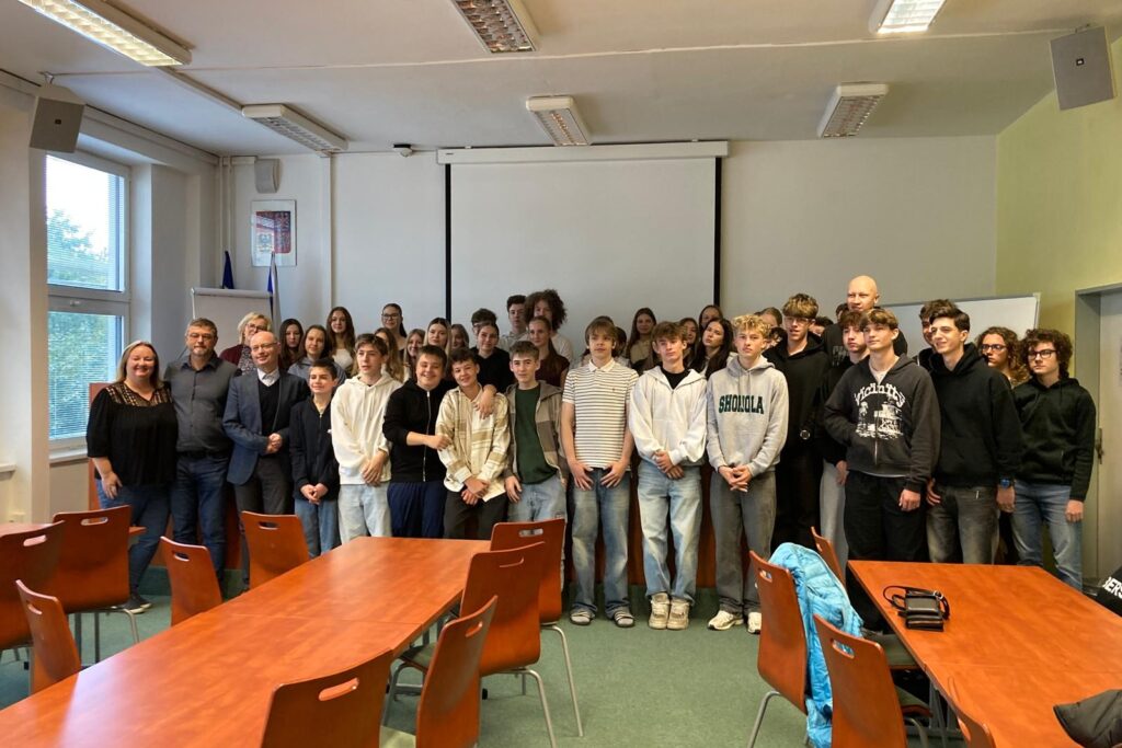 Naše škola se již po několikáté zapojila do týdenního projektu s bavorskou školou ve Viechtachu. V září 2025 k nám přijelo 16 studentek a studentů. Celá třída G5A spolu s několika dalšími studenty gymnázia si připravili pestrý program. První dopoledne jsme strávili ve škole, němečtí studenti soutěžili, řešili různé kvízy a úkoly, učili se česky
