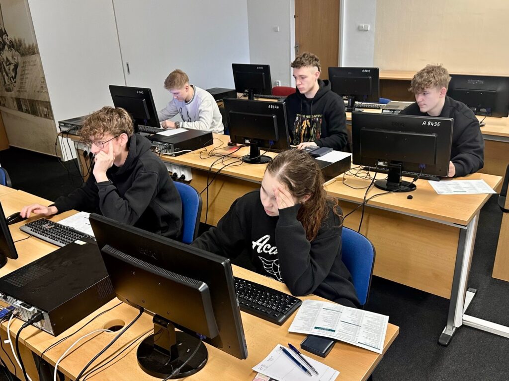 Také v letošním roce jsme se dne 28. ledna 2026 spolu s 21 žáky třídy T2.C vydali na exkurzi do Ústavu informatiky Slezské univerzity v Opavě. Naší první zastávkou byla Unisféra, kde jsme zhlédli projekci dvou snímků – jeden byl vytvořen pomocí skriptování a druhý kombinací kamerového záznamu a animací. Nahlédli jsme také do technického