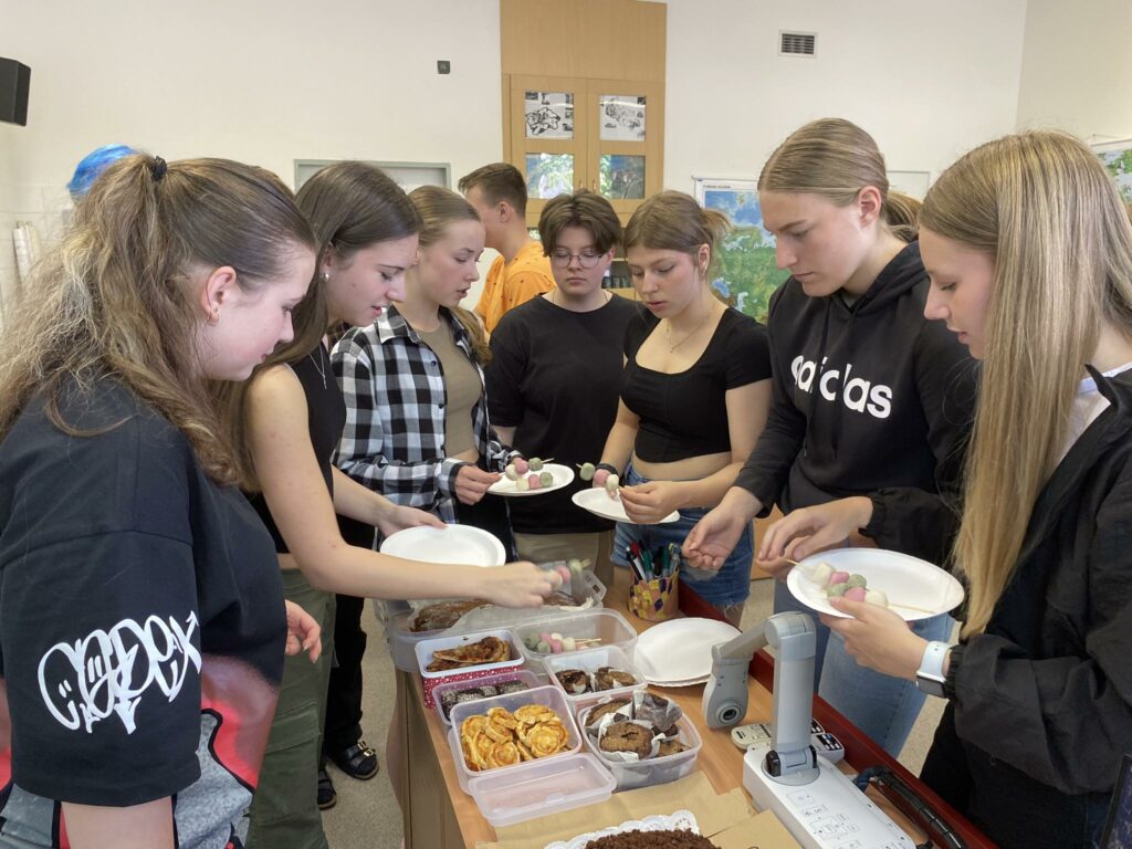 V červnu 2023 se studenti G4.A (NJ) v rámci projektu Ohne Grenzen (Goethe institut) rozhodli, že si v rámci projektu nevytvoří jen virtuální kuchařku, ale také podle ní něco uvaří nebo upečou. Samozřejmě došlo nejprve k rozdělení studentů do skupinek, k výběru oblíbeného jídla, hledání slovíček k receptům. Všechny informace studenti pak zpracovali pomocí aplikace