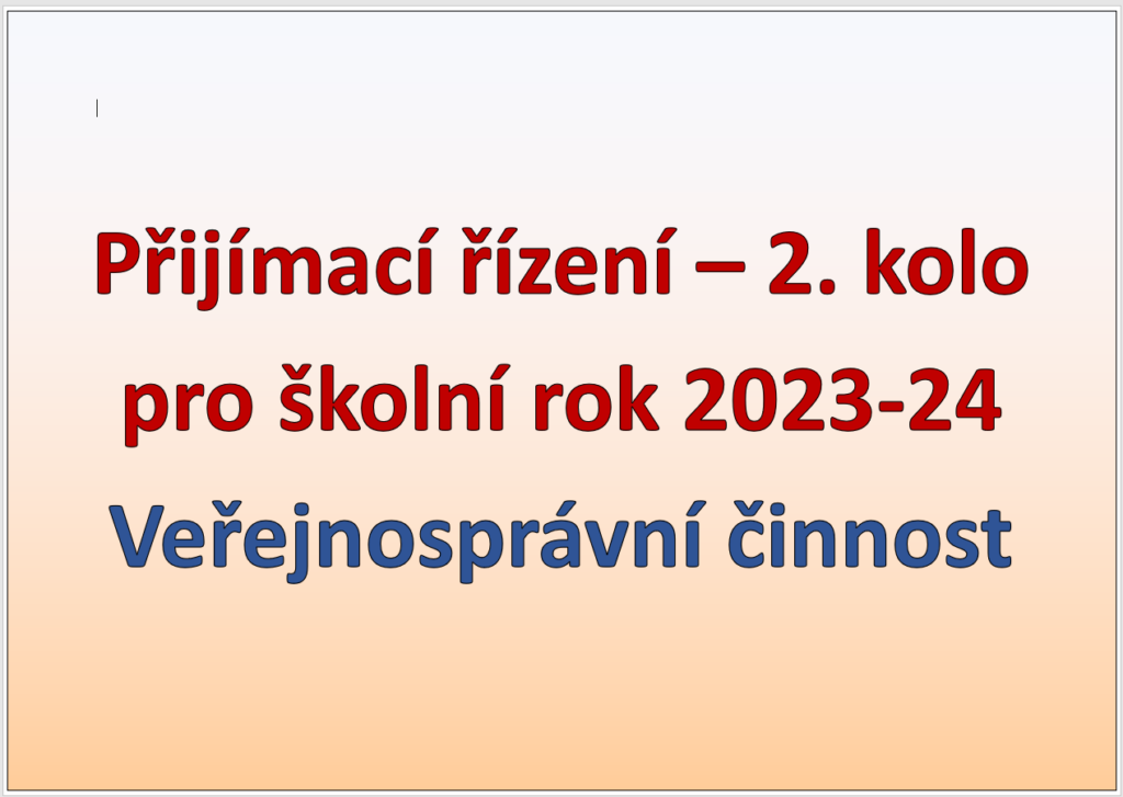 Vyhlášení 2. kola přijímacího řízení pro školní rok 2023-2024 Kód oboru Název oboru Počet přijímaných Odevzdání přihlášky Přehled kritérií 68-43-M/01 Veřejnosprávní činnost 5 žáků 5. 6. 2023 Kritéria VS Vytisknout formulář přihlášky můžete ZDE! Požadavky pro přijetí podání přihlášky na naši školu nejpozději do 5. června 2023 (přihláška ke stažení), nepožadujeme lékařské potvrzení Zveřejnění výsledků