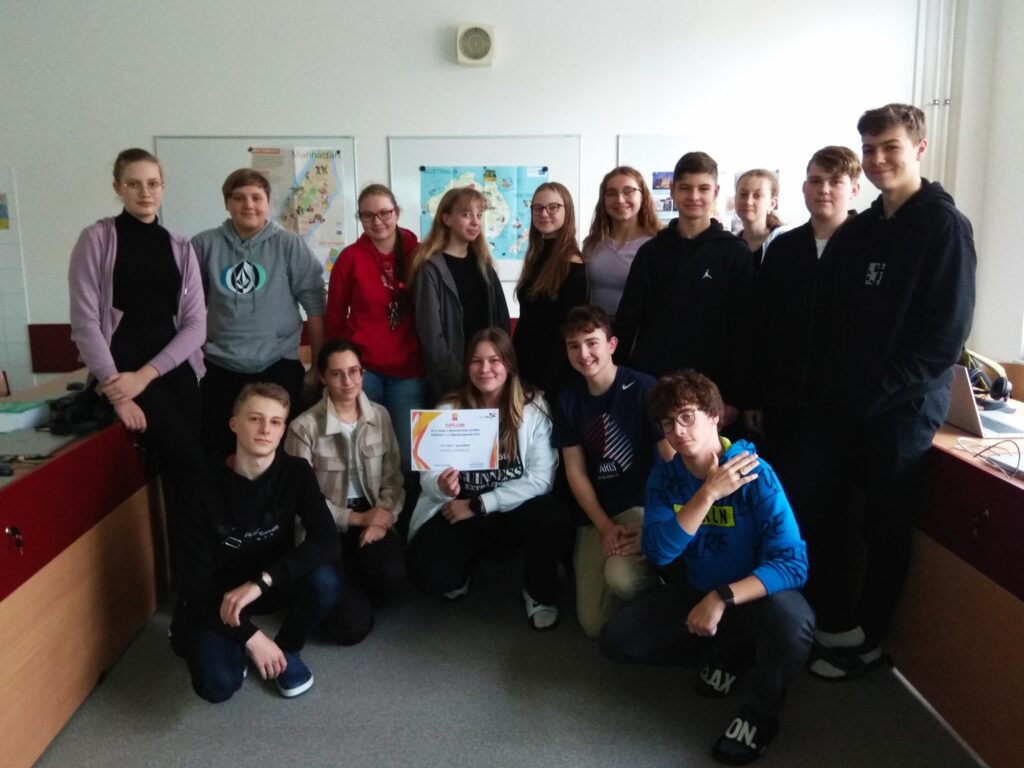 Začátkem listopadu 2022 nás potěšila skvělá zpráva – naše třída G4.A – španělština získala 2. místo v okresním kole soutěže Jazykový WocaBee šampionát! V úvodním kole celostátního šampionátu dosáhli naši žáci skvělý výsledek – denní průměr až 321 bodů (tzv. WocaPoints) na žáka. Pro lepší představu – jedna správná odpověď při procvičování slovíček znamená zisk přibližně 2-3 WocaPoints bodů. 2. místo v