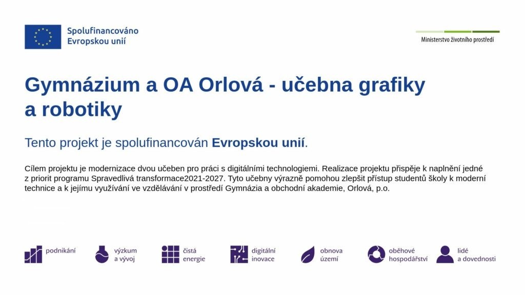 Název projektu Gymnázium a OA Orlová – učebna grafiky a robotiky