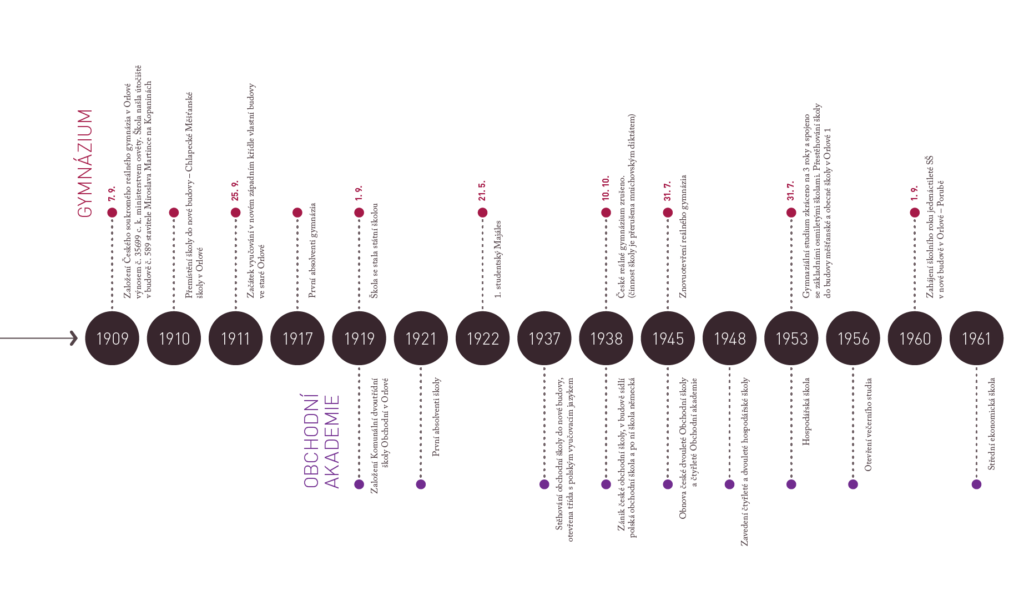 Gymnázium a Obchodní akademie, Orlová, střední škola s tradicí a zkušenostmi a zároveň moderní a dobře fungující vzdělávací instituce působí v Orlové od 1. července 2013. Vznikla sloučením dvou samostatných subjektů Gymnázia a Střední odborné školy a Obchodní akademie, které samy o sobě představují nejméně stoletou historii středního školství v Orlové, dobu prvních desetiletí dvacátého století a prvních let samostatné republiky, kdy postupně v celé zemi vznikaly nové školy, aby zabezpečily rozvoj vzdělanosti. Gymnázium i Obchodní akademie v Orlové patřily mezi ně. Pojďme si připomenout alespoň některé okamžiky v jejich dějinách…